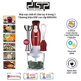 - Máy xay sinh tố cầm tay DSP KM1004 (200W) sản phẩm gồm 2 cối xay, 1 que đánh trứng, 1 lưỡi dao, 1 máy xay cầm tay