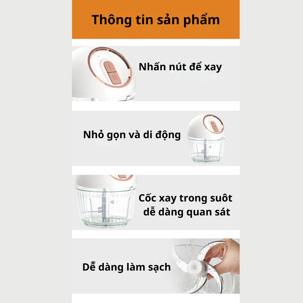 ️ ĐIỂM ĐẶC TRƯNG CỦA SẢN PHẨM - Thiết kế nhỏ gọn, dễ dàng cầm nắm khi sử dụng xay thực phẩm. - Dễ dàng xay nhuyễn thực phẩm với lưỡi dao sắc bén. -