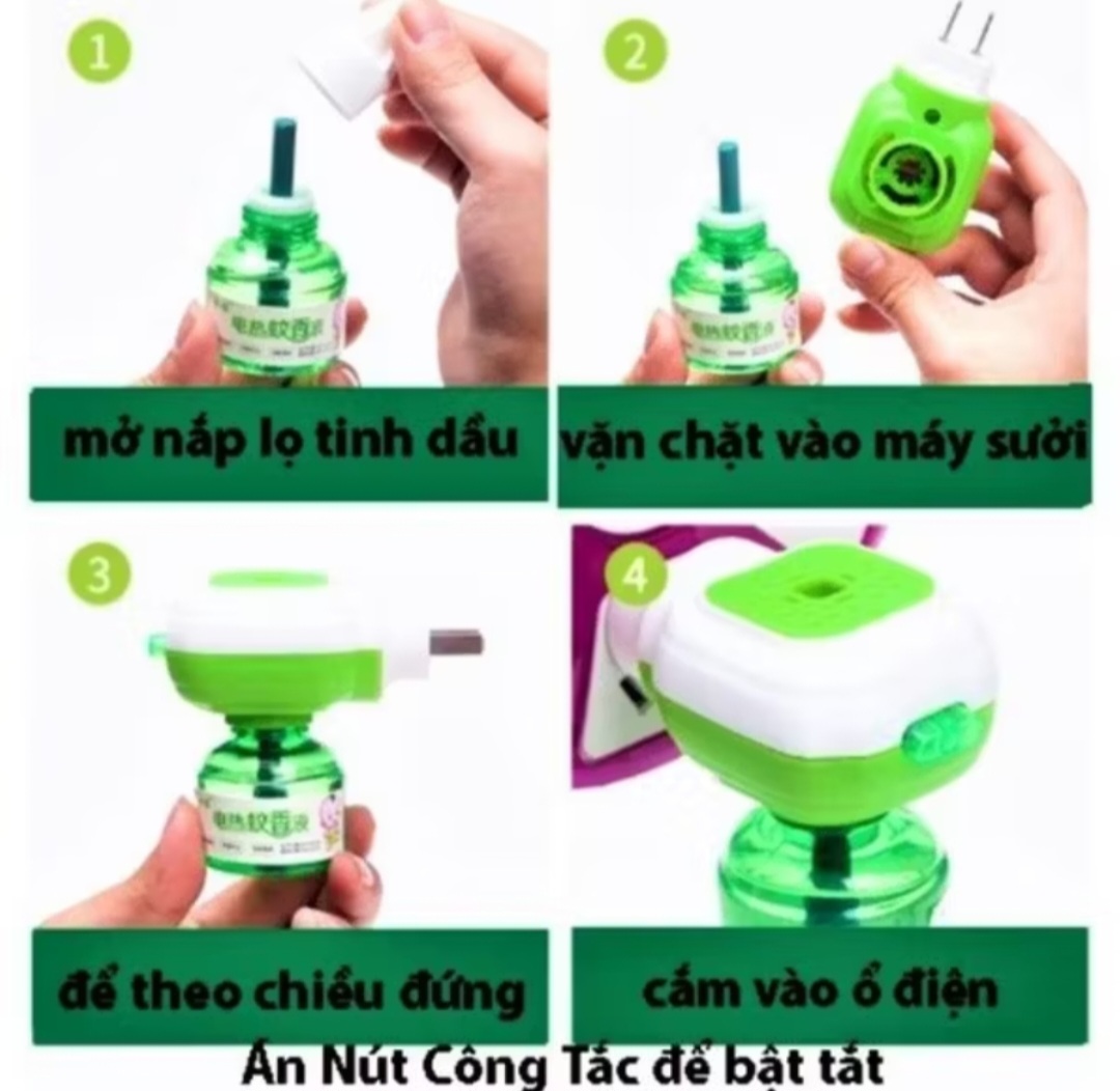 Dễ dàng sử dụng với Máy xông tinh dầu đuổi muỗi , bạn chỉ cần lắp lọ dung dịch vào trong thân máy rồi cắm phích điện là được