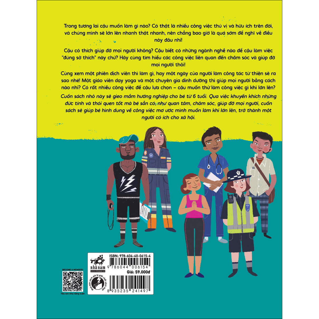 Cuốn sash nhỏ này sẽ gieo mầm hướng nghiệp cho bé từ 6 tuổi. Qua việc khuyến khích những đức tính và thói quen tốt mà bé sẵn có, như quan tâm, chăm sóc và để ý đến môi trường xung quanh, cuốn sách sẽ giúp bé hình dung về công việc mơ ước mình muốn làm khi lớn lên, trở thành một người có ích cho xã hội