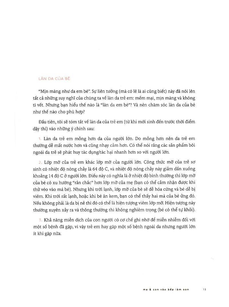 Mẹ và con vào bếp làm son giống như một món quà nhỏ xinh, giàu nữ tính mà người mẹ dành tặng cô con gái bé bỏng, hiếu kỳ. Cuốn sách không chỉ giới thiệu công thức làm son mà còn một số bí quyết làm mỹ phẩm home-made an toàn, lành tính như gel nha đam, dầu dưỡng da hay các sản phẩm thú vị khác như dầu đuổi muỗi, bomb tắm...