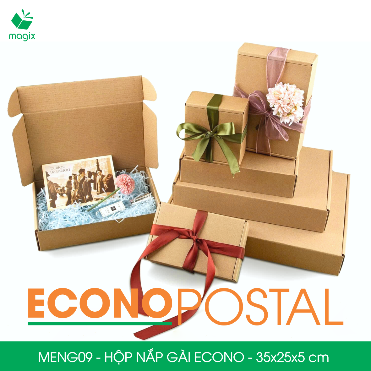 ✨MENG09 - 35x25x5 cm - 100 Hộp carton nắp gài đóng hàng giá rẻ, hộp gói hàng, hộp quà thời trang