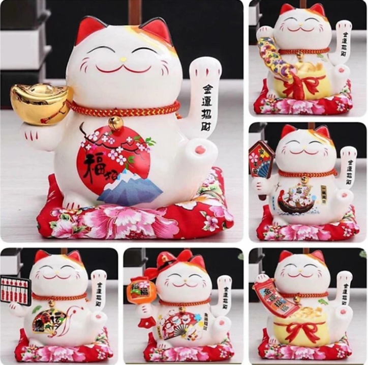 ✨Mèo thần tài Maneki Neko ngũ phúc lâm môn vẫy tay chiêu tài lộc bằng gốm sứ - mẫu giao ngẫu nhiên