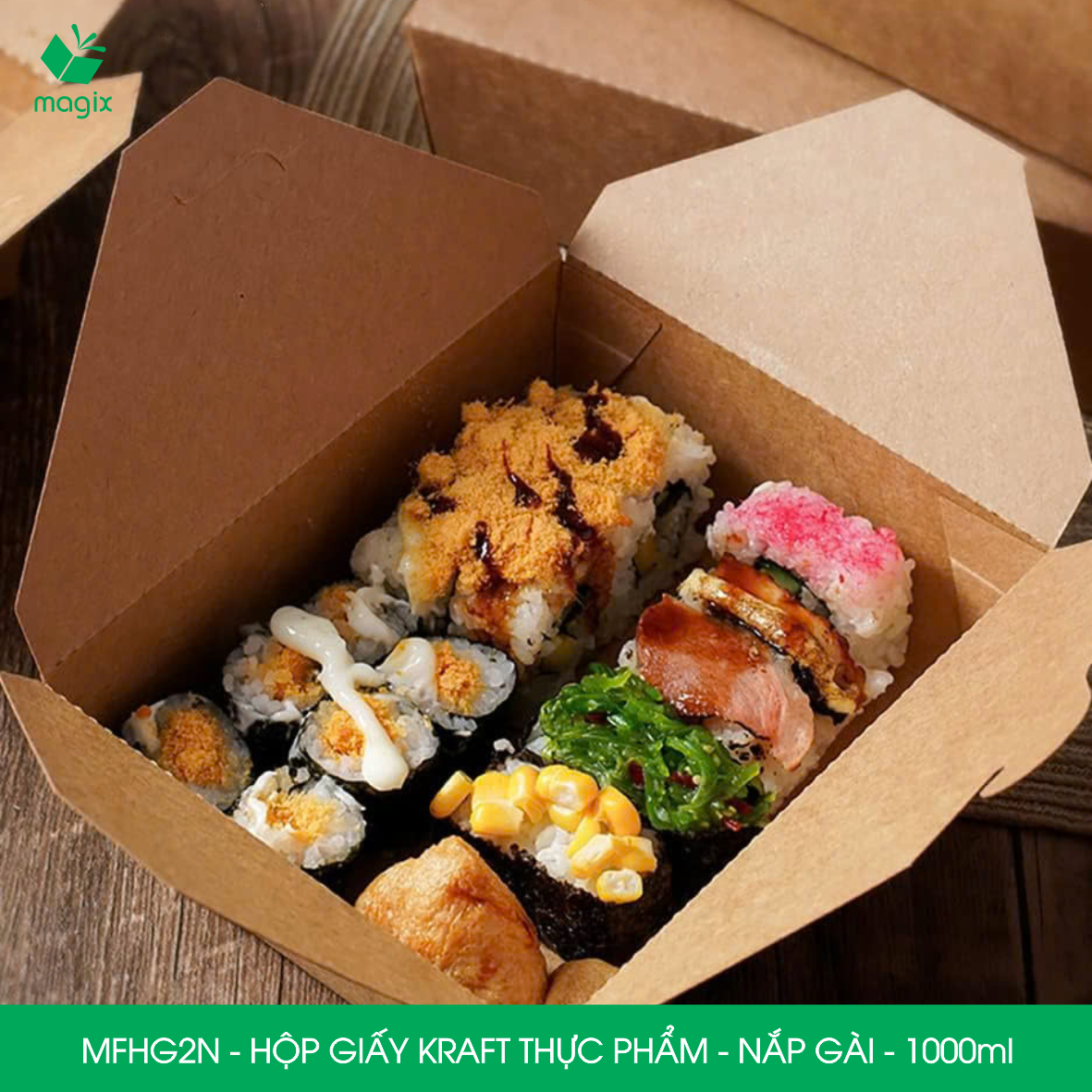 • MFHG2N - Hộp giấy Kraft đựng thực phẩm - Nâu 1.000ml (Miệng: 16.5x13.3 cm - Đáy: 15.5x12 cm - Cao: 5 cm)
