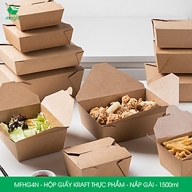 • MFHG3N - Hộp giấy Kraft đựng thực phẩm - Nâu 1.400ml (Miệng: 17.2x14.7 cm - Đáy: 15.5x12 cm - Cao: 6.5 cm)