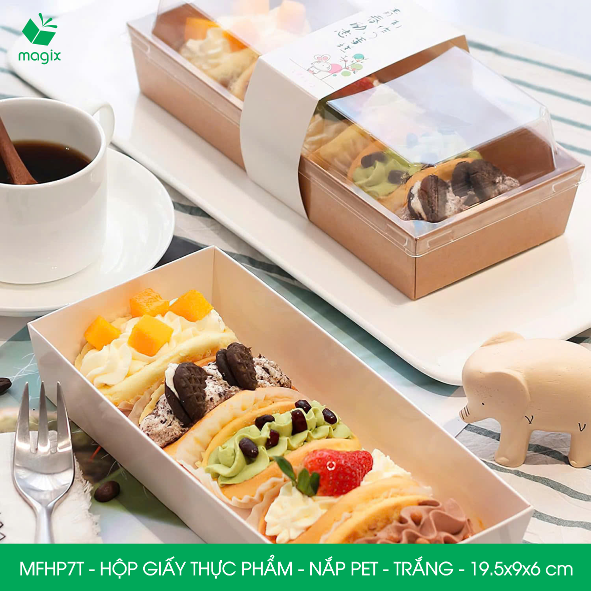 ✨MFHP7T - 19.5x9x6 cm - 25 hộp giấy nắp PET trắng đựng thực phẩm, thức ăn mang đi
