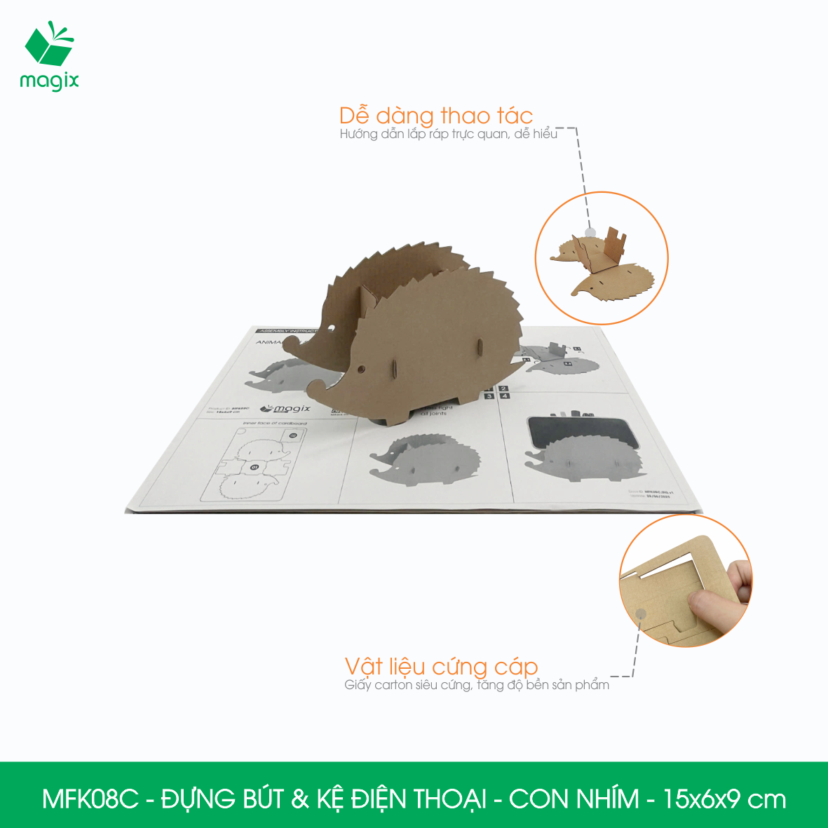 ✨MFK08C - Đựng bút & kệ điện thoại bằng giấy carton - Hộp bút kiểu dáng Con nhím - 15x6x9 cm