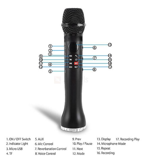 • Micro karaoke bluetooth L-598 cho phép bạn hát và ghi âm giọng nói của bạn ở mọi nơi. Micro chất lượng cao mang lại âm thanh rõ ràng và chất lượng. Bạn có thể sử dụng loa micro này để hát bài hát cho dù ở KTV hay ở nhà. Tính năng, đặc điểm micro chất lượng cao sẽ lọc tiếng ồn và không khí. Một phím để ghi lại chức năng, lắp thẻ TF, nhấn nút REC để ghi lại âm thanh (không có card TF). Kết nối micro L-598 với điện thoại của bạn qua bluetooth, bạn có thể hát những bài hát yêu thích của mình mọi lúc mọi nơi.