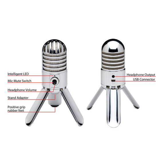 Kết cấu hoàn hảo Micro Thu Âm USB - Samson Meteor Mic có một trong các màng ngăn tụ lớn nhất (25mm) của bất kỳ mic USB. Mô hình cardioid pickup, đáp ứng tần số mịn và 16-bit, 44.1/ 48kHz cho bạn kết quả âm thanh chuyên nghiệp. Vỏ ngoài mạ crôm Meteor Mic bao gồm một thiết kế chân gập trông tuyệt vời trên máy tính để bàn của bạn. Và các chân điều chỉnh đến vị trí tối ưu cho bất kỳ ứng dụng ghi âm từ guitar acoustic, thu âm giọng hát hay bài phát biểu. Micro thu âm nhạc cụ Samson USB Meteor gồm một ngõ ra âm thanh tai nghe giúp giám sát độ trễ và tai nghe âm lượng, nút vặn kiểm soát âm lượng hoàn hảo. Một nút mute trên microphone mang đến cho bạn sự riêng tư  bật tiếng tắt tiếng trong khi hội nghị video online.  Khả năng tương thích cao Micro thu âm Samson USB Meteor tương thích với hầu hết các phần mềm âm thanh kỹ thuật số trên máy tính. Một cáp USB và túi đựng cũng được bao gồm trong bộ. Đối với ca sĩ / nhạc sĩ hay ban nhạc Meteor Mic đảm bảo bạn sẽ bắt được tất cả các nốt cardioid nó bắt giọng hát 1 cách tự nhiên hoặc có thể được sử dụng để thu âm nhạc cụ hoặc thu âm ampli guitar. Ứng dụng micro thu âm Samson USB Meteor Samson USB Meteor dòng micro thu âm USB chuyên nghiệp, dùng làm micro thu âm trên máy tính, micro thu âm tại nhà hoặc micro thu âm studio, phát thanh, thuyết minh, micro lồng tiếng, thu âm truyện. Micro phòng thu chuyên nghiệp micro thu âm tại nhà, home recording studio, micro hát karaoke online trên các diễn đàn ca hát, CCtalk.