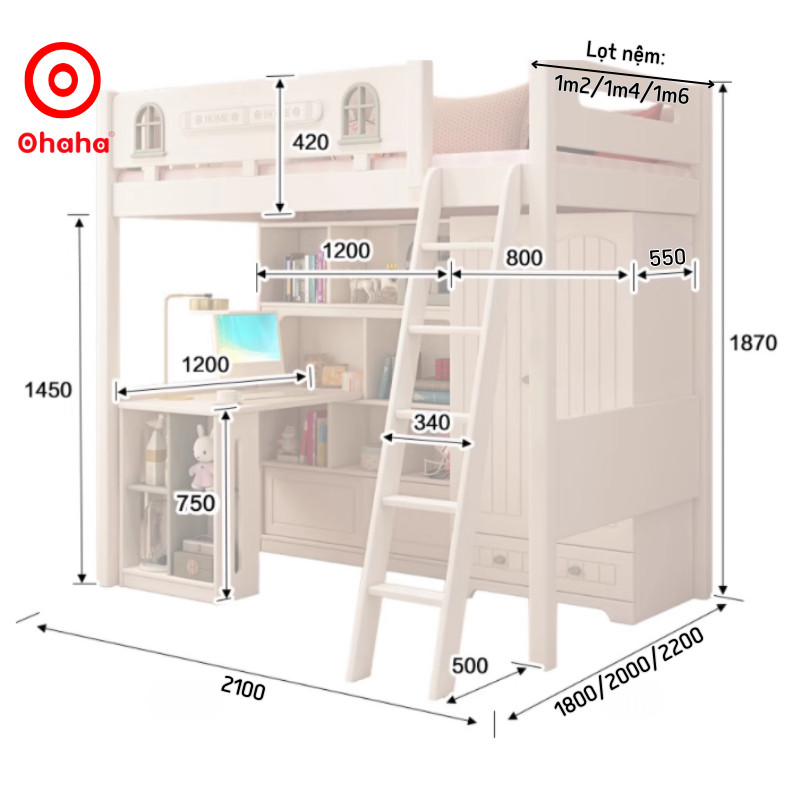 ** Sản phẩm chỉ bao gồm 1 giường và không đi kèm phụ kiện khác ** Giường tầng thông minh Ohaha kết hợp tủ quần áo - GTTM043 là mẫu giường được rất nhiều khách hàng yêu thích
