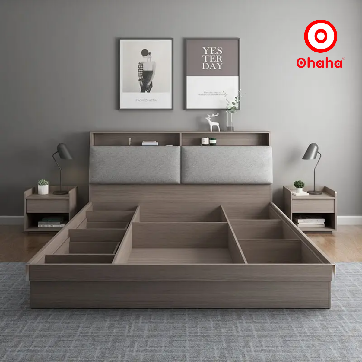 ✨[Miễn phí vận chuyển & lắp đặt] Giường ngủ thông minh cao cấp bọc nệm đầu giường có hộc kéo gỗ công nghiệp Ohaha - GN018