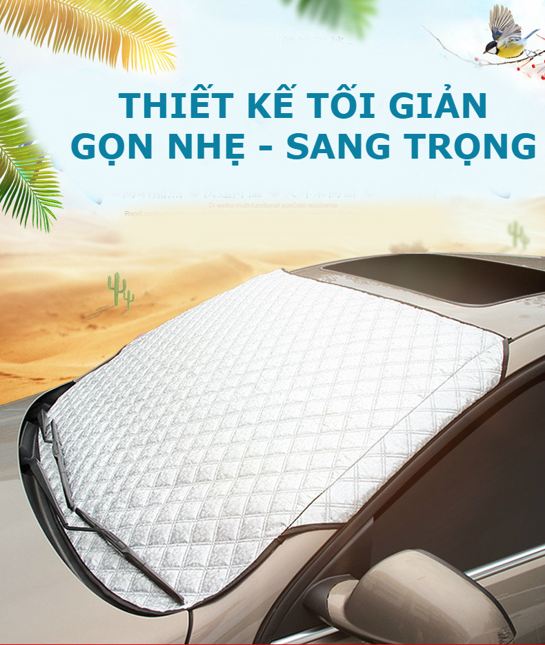 Đặc điểm nối bật của bạt chống nóng kính xe này là gì ?? Thiết kế đơn giản, nhỏ gọn rất thuận tiện với cccm không thích dùng bạt phủ Chất liệu 3D không thấm