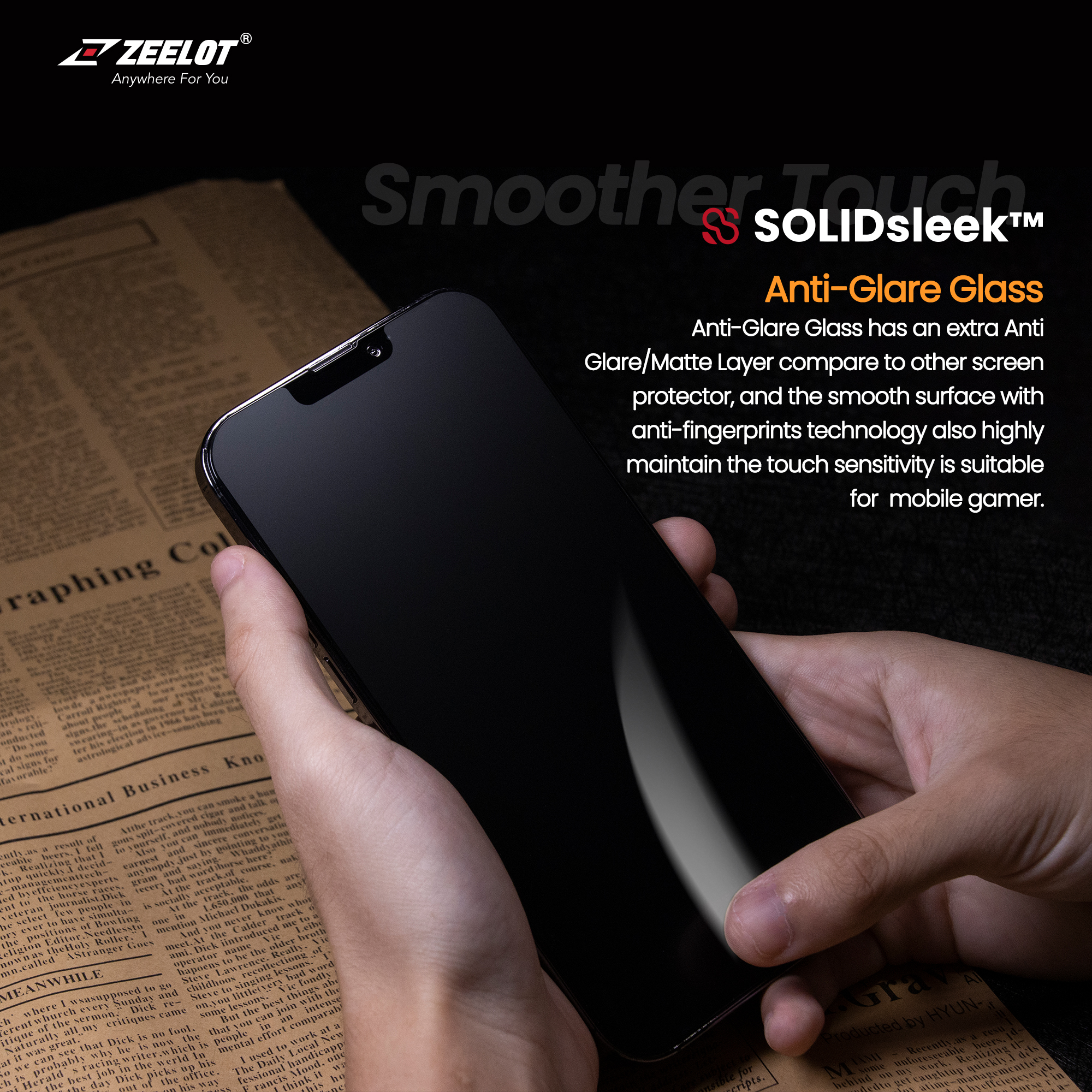 Mua tại TiktokKính Cường Lực Chống Vân Tay Zeelot SOLIDsleek ANTI-GLARE Dành Cho iPhone 14 Pro Max - 14 Pro - 14 Max/13 Pro Max - 14/13/13 Pro Đặc tính sản phẩm: Thương hiệu cao cấp từ Singapore với công nghệ kính SOLIDsleek độc quyền KÍNH CHỐNG VÂN TAY – Công nghệ chống vân tay hoàn hảo nhưng không ảnh hưởng đến độ hiển thị đảm bảo hình ảnh chân thực nhất tăng trải nghiệm của người dùng.