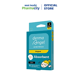 Miếng dán mụn ban đêm Derma Angel (12 miếng/hộp) là miếng dán mụn ban đêm với lớp Hydrocolloid dày hơn sẽ bám chặt bề mặt da và hút mụn hiệu quả cả đêm đồng thời