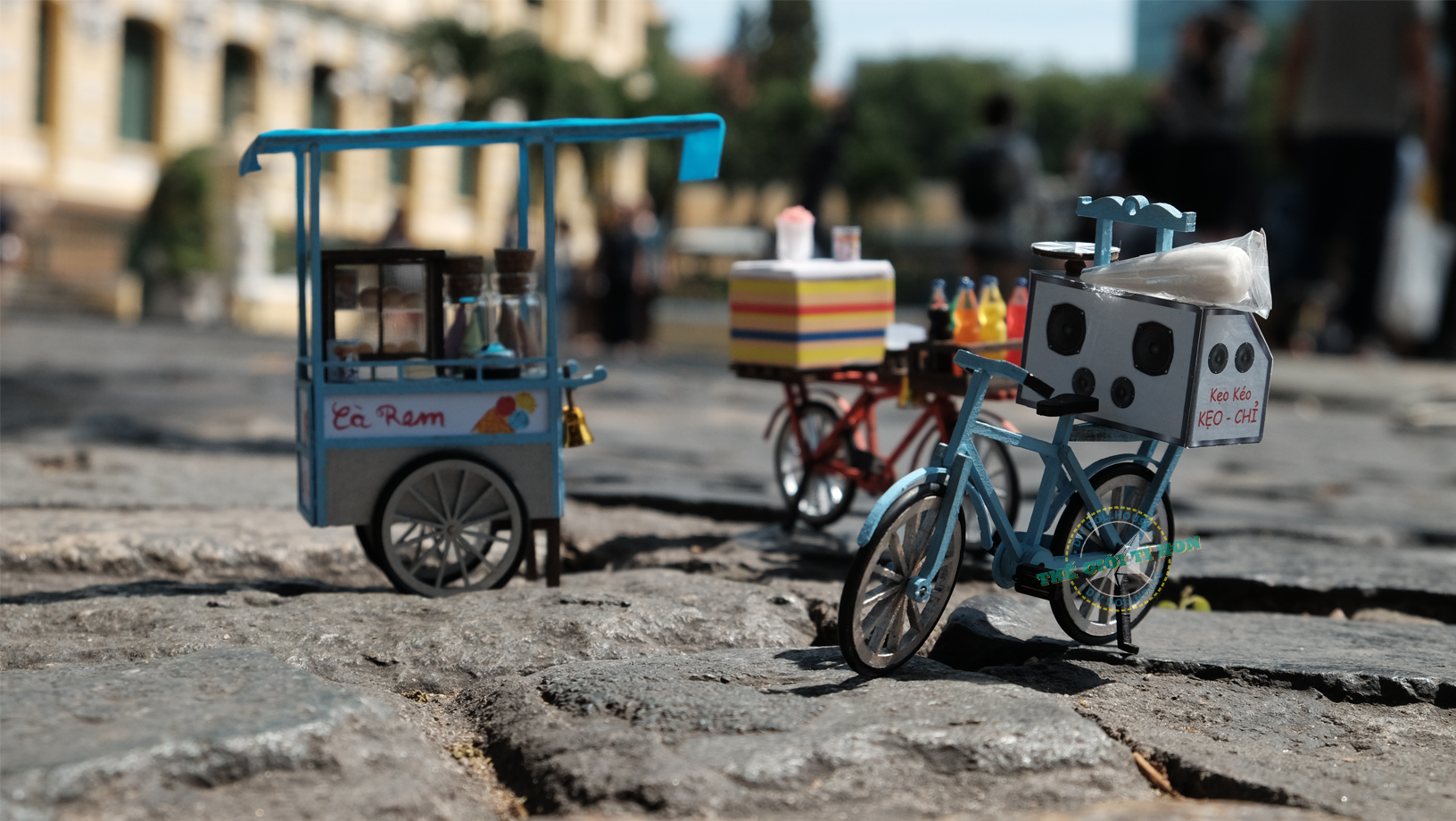 Khách lưu ý: Sản phẩm chưa lắp ráp, chưa bao gồm keo+ dụng cụ+ tượng, không áp dụng đổi tên bảng hiệu Mô Hình Xe Hàng Rong Sài Gòn Thu Nhỏ - Xe Bánh