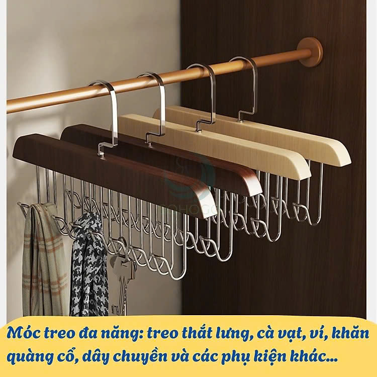 Móc Gỗ Treo Đồ Lót, Khăn, Thắt Lưng, Cà Vạt, Áo 2 Dây Đa Năng Tiện Dụng #moctreothongminh #moctreoq
