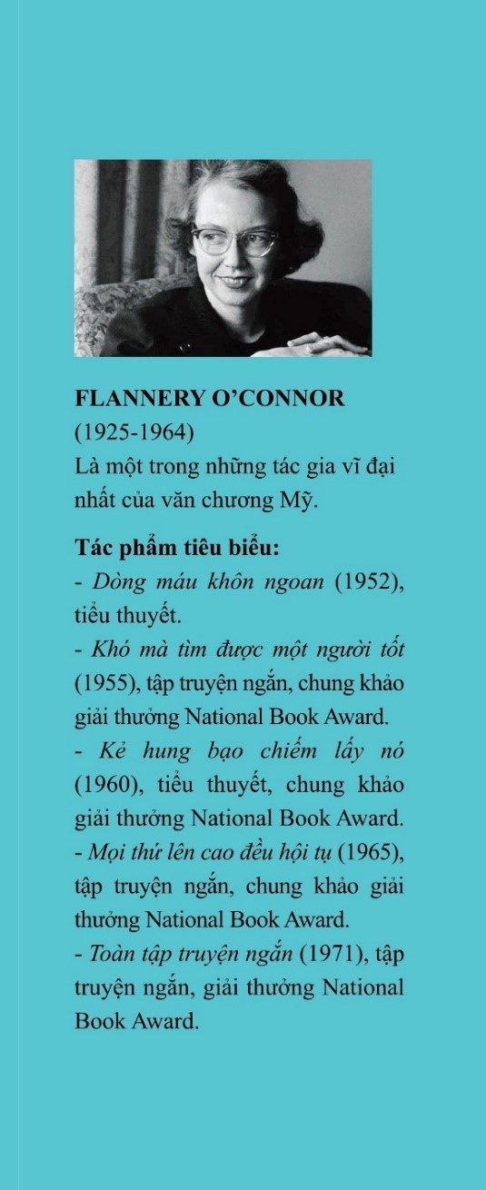 Được nhiều nhà phê bình coi là một trong những nhà văn viết truyện ngắn xuất sắc nhất thế kỷ 20 và đồng thời cũng được xếp vào hàng những nhà văn vĩ đại nhất mà nước Mỹ từng sản sinh ra, Flannery O’Connor (1925-1964) qua đời ở tuổi 39 cùng với một sự nghiệp văn chương ngắn ngủi nhưng lẫy lừng với tổng cộng 31 truyện ngắn, hai cuốn tiểu thuyết ngắn cùng một số tiểu luận.