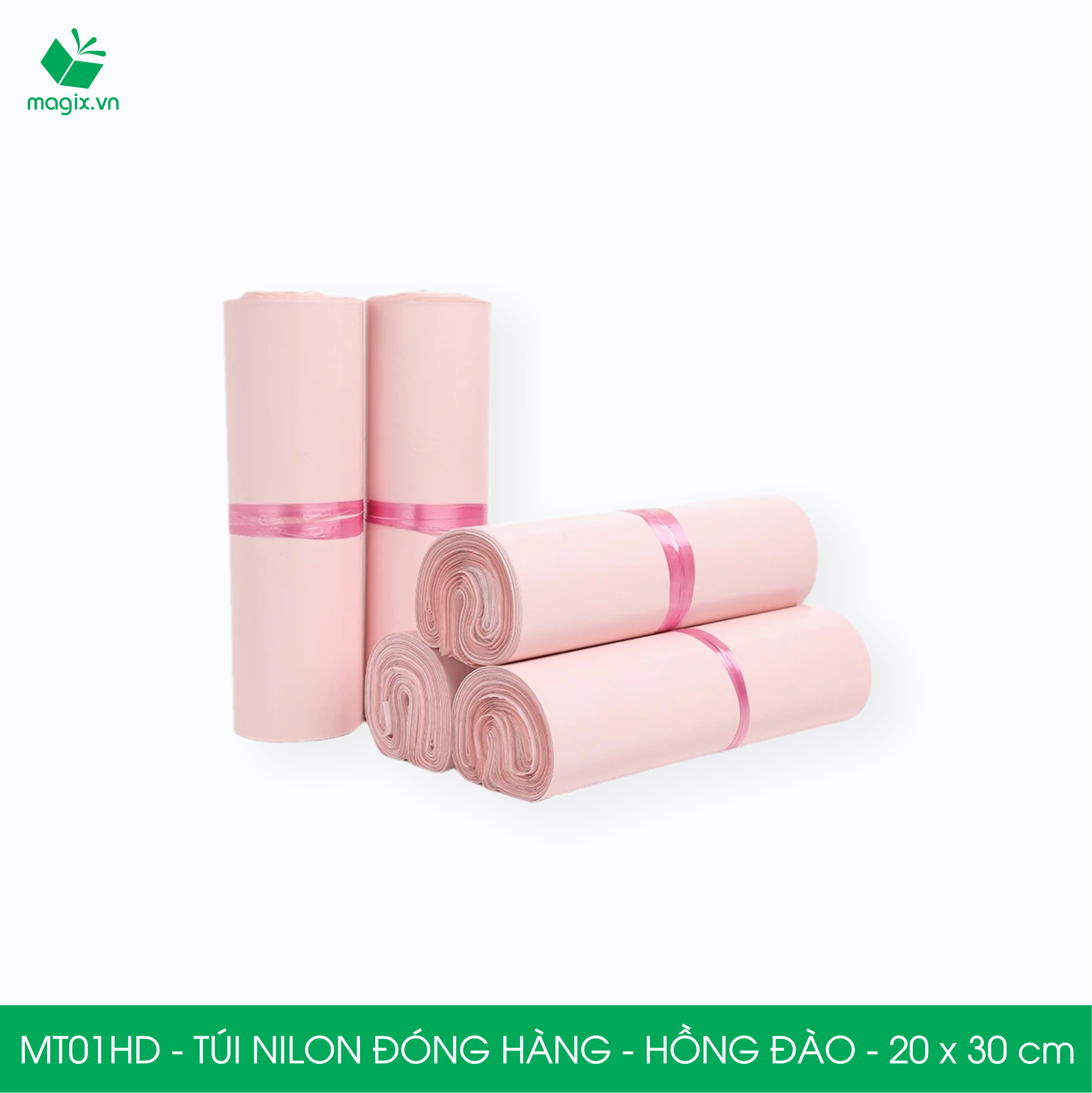 ✨MT1HD - 25x35 cm - Túi nilon gói hàng - 200 túi niêm phong đóng hàng màu hồng đào