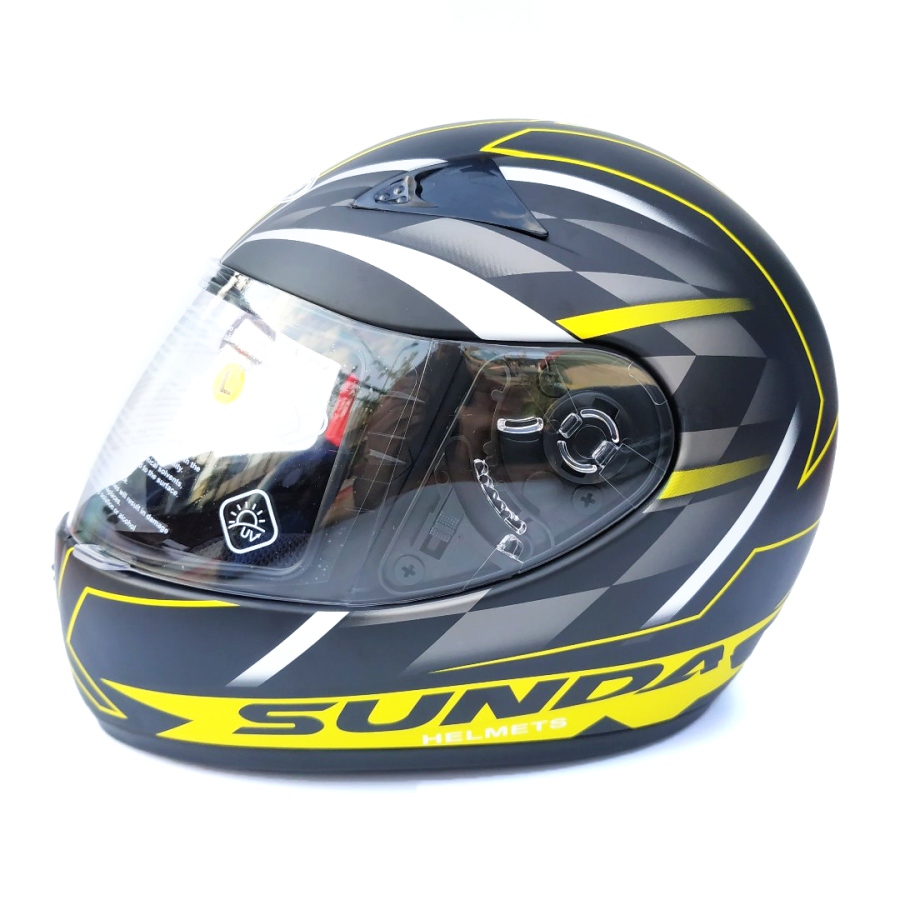 Mũ bảo hiểm fullface chính hãng Sunda 2000c đen nhám tem vàng là sản phẩm được cải tiến từ mẫu Andes/Sunda 2000A vốn được sản xuất để xuất khẩu phục vụ chủ yếu cho thị trường