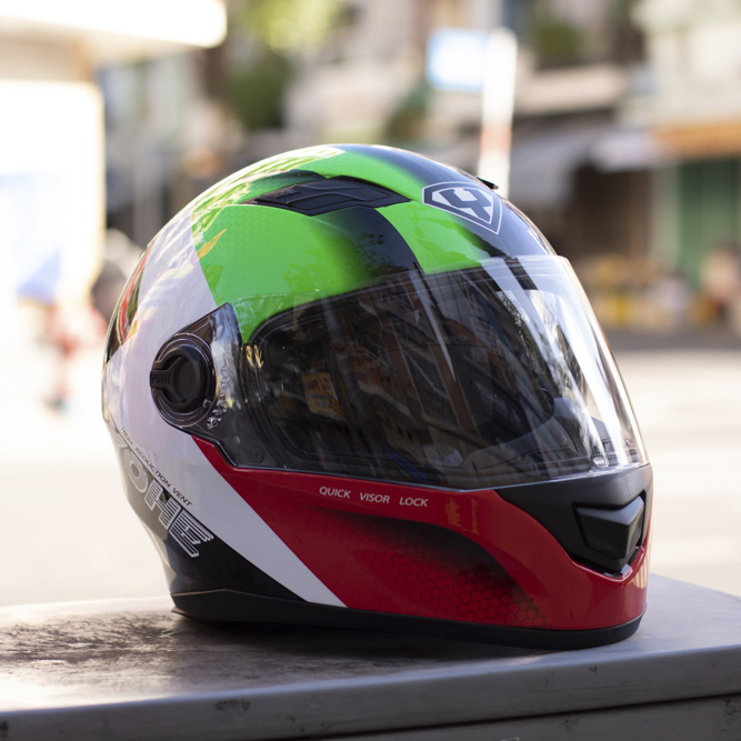 Mũ bảo hiểm Fullface Yohe 970 Hai Lớp Kính có thiết kế năng động, hiện đại, tương đối nhỏ gọn. Đặc biệt màu sắc của mũ bảo hiểm 2 lớp kính fullface Yohe 970 đa dạng, cách phối màu sơn mạnh mẽ, đầy cá tính vừa đảm bảo an toàn vừa mang lại vẻ ngoài chất lừ cho người đội.