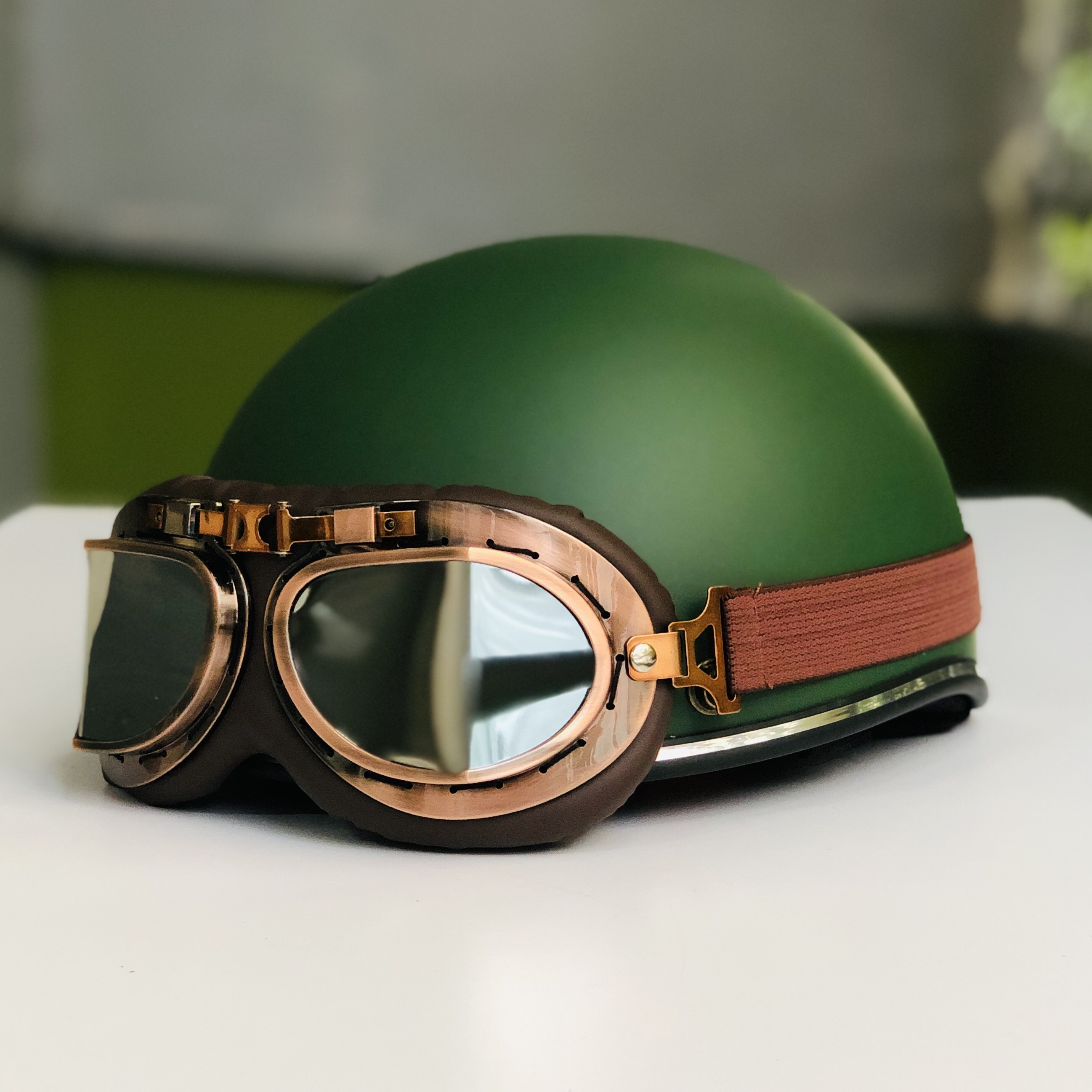 Mũ bảo hiểm xe máy 1/2 RONA haly viền bạc kèm kính phi công viền đồng cao cấp chính hãng