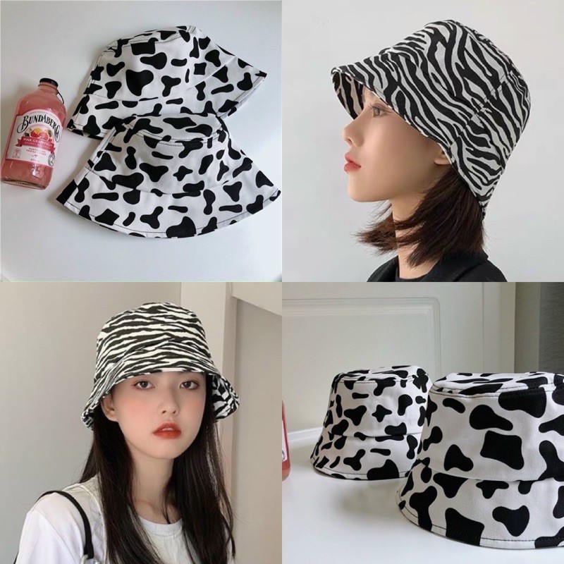 Mũ vành 2 mặt, bucket hat họa tiết bò sữa dễ thương