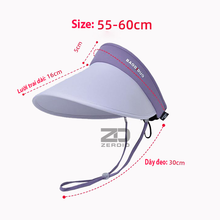 - Kiểu dáng: Mũ lưỡi trai nửa đầu / Mũ chống nắng