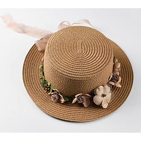 Mũ đi biển đẹp nón rộng vành nhỏ đai hoa lá thời trang Hàn Quốc Chất liệu cói