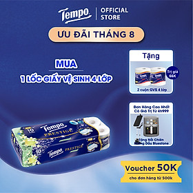 Giấy vệ sinh cao cấp Tempo dạng cuộn với 4 lớp, không mùi, giấy mềm mịn, thấm hút tốt. Được sản xuất theo công tiên tiến, nguyên liệu tự nhiên đạt chuẩn Châu Âu không