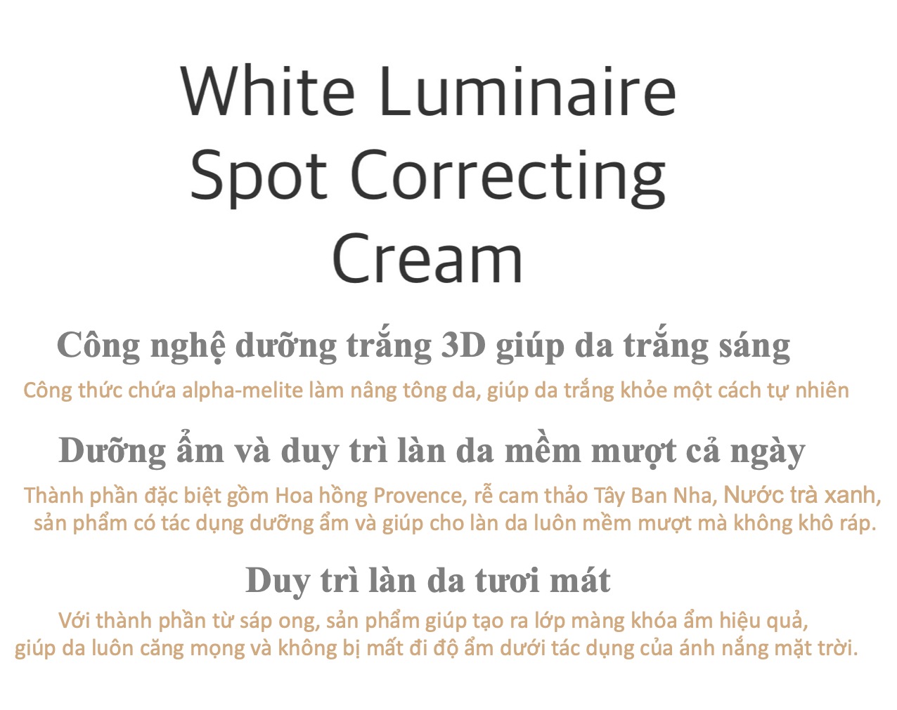 • Sự kết hợp hoàn hảo ba thành phần này trong cùng công thức sẽ tối ưu hóa tác dụng làm trắng, tái tạo sức sống mới và dưỡng ẩm cho làn da