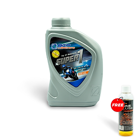 Combo 1 lon nhớt xe máy tổng hợp toàn phần FURIO Super 1 - SAE 10W40 - API SN - JASO MA2 - 1 Lít + 1 chai dung dịch vệ sinh động cơ BCP