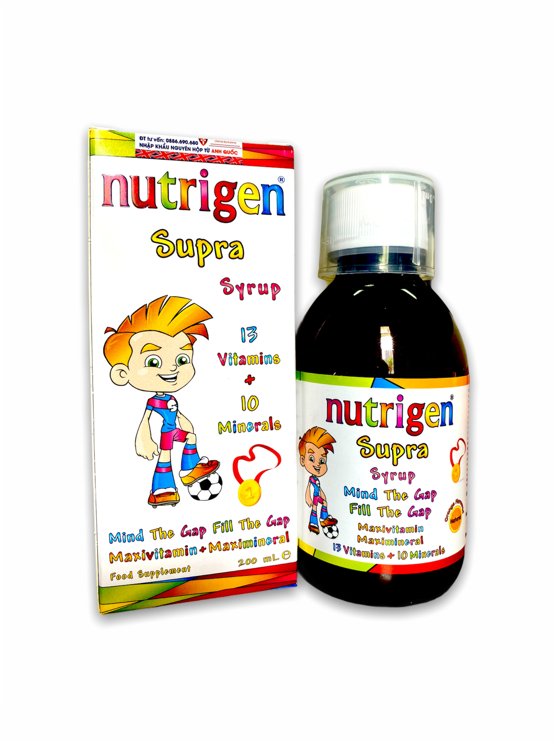 Công thức độc nhất của Nutrigen Supra Maxivitamin Maximineral Syrup cung cấp đến 13 vitamin và 10 khoáng chất thiết yếu giúp tăng cường sự phát triển, giúp trẻ lớn khỏe mạnh và hỗ trợ các chức năng của cơ thể.