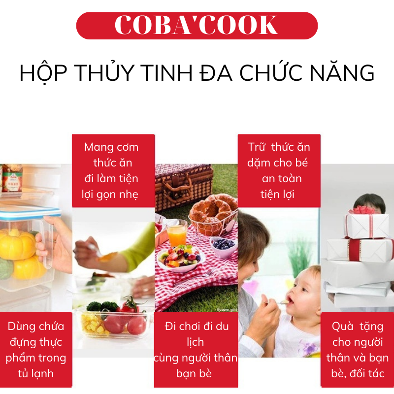 Hộp thủy tinh sử dụng an toàn cho lò vi sóng và máy rửa chén. với độ bền cao, chịu nhiệt và chịu lực tốt, cho thời gian sử dụng lâu dài.