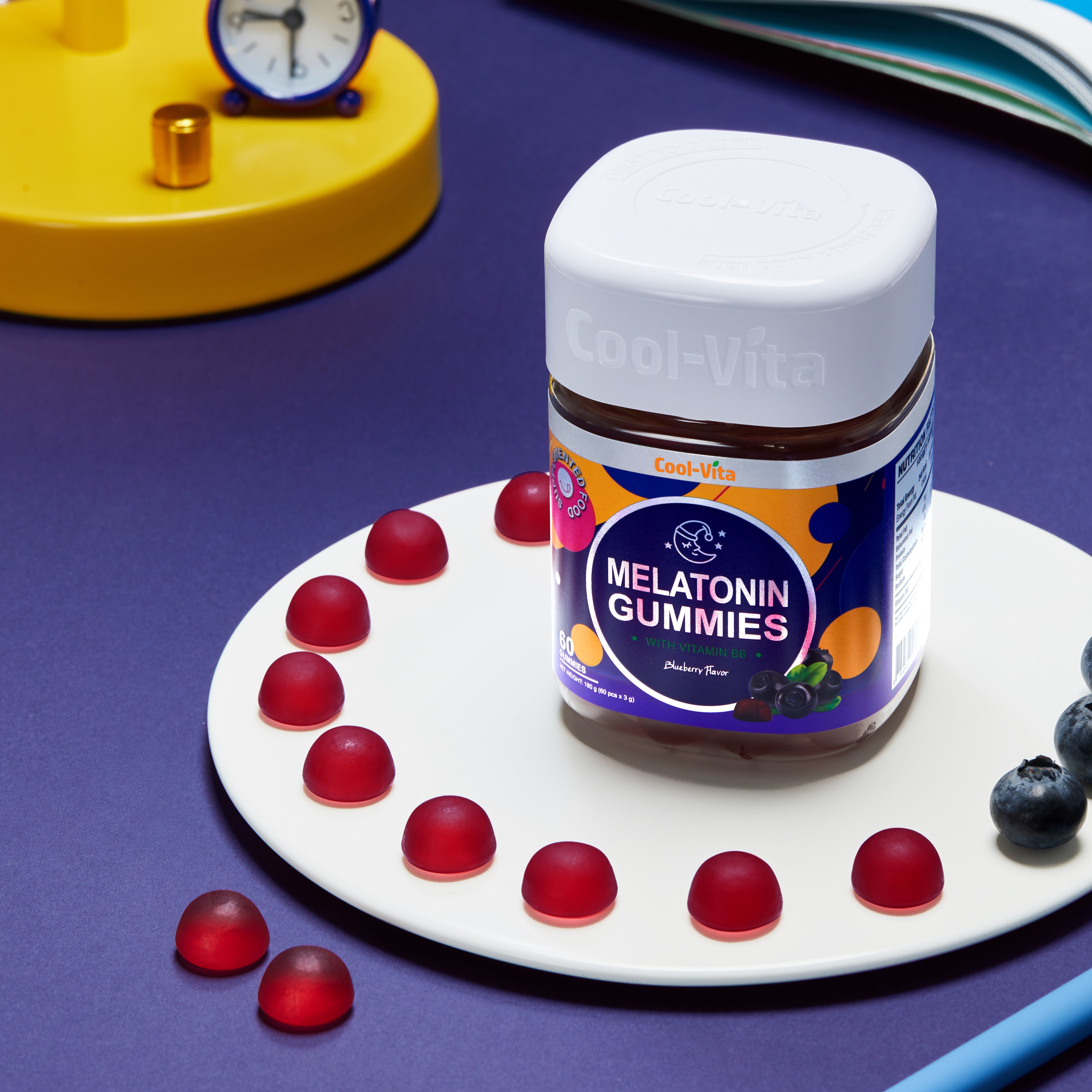 - (Tặng) 1 Hộp Nước Uống Collagen Cao Cấp Cool-Vita 3000mg Collagen Peptide (45ml× 7 túi)/hộp Bạn đang gặp khó khăn khi đi vào giấc ngủ? Vậy thì đừng nên bỏ qua Kẹo Dẻo Melatonin Vị Việt Quất của CoolVita! Kẹo Dẻo Melatonin CoolVita Vị Việt Quất Kết Hợp Vitamin B6 hỗ trợ điều chỉnh chu kỳ giấc ngủ và hỗ trợ cải thiện chất lượng giấc ngủ ngon hơn. Với 6mg melatonin trong mỗi 2 viên kẹo, kết hợp cùng vitamin B6 hỗ trợ giảm căng thẳng, có một đêm ngủ ngon và sâu hơn. Công dụng nổi bật: Hỗ trợ cải thiện chất lượng giấc ngủ: Mỗi 2 viên kẹo dẻo chứa 6mg Melatonin kết hợp Vitamin B6 hỗ trợ điều chỉnh chu kỳ giấc ngủ tự nhiên, giúp bạn dễ dàng đi vào giấc ngủ và duy trì giấc ngủ sâu suốt đêm. Hỗ trợ giúp thư giãn trước khi ngủ: Vitamin B6 giúp tạo cảm giác thư giãn trước khi ngủ, giúp cơ thể dễ dàng đi vào giấc ngủ. An toàn và lành mạnh: Kẹo Dẻo Melatonin CoolVita không phải là thuốc ngủ, hỗ trợ bạn ngủ ngon hơn. Nguyên liệu từ thực vật: Được làm bằng pectin từ thực vật thay vì gelatin, sản phẩm an toàn cho sức khỏe và phù hợp với chế độ ăn chay. Đặc điểm sản phẩm: Hương vị thơm ngon: Vị việt quất chua ngọt dễ chịu, kẹo dẻo mềm mịn, ngon miệng, không gây dính răng. Dễ sử dụng: Sản phẩm được chế biến thành dạng kẹo dẻo nhai tiện lợi. Tiện lợi mang theo: Hộp nhựa nhỏ gọn, dễ dàng mang theo khi đi công tác hoặc du lịch. Thành phần: Đường trắng tinh luyện, Siro mạch nha (48%), chất làm dày (Pectin), chất điều chỉnh độ acid: Acid citric, hương liệu quả việt quất tự nhiên, dầu thực vật (chứa chất chống đông vón: Sáp carnauba), Vitamin B6 (dạng Pyridoxin hydrochloric 0,13%), Melatonin (0,12%), Maltodextrin, chất tạo màu tự nhiên. Nước ép trái cây và rau quả. Khối lượng tịnh: 180g (60 viên x 3g) Hướng dẫn sử dụng: