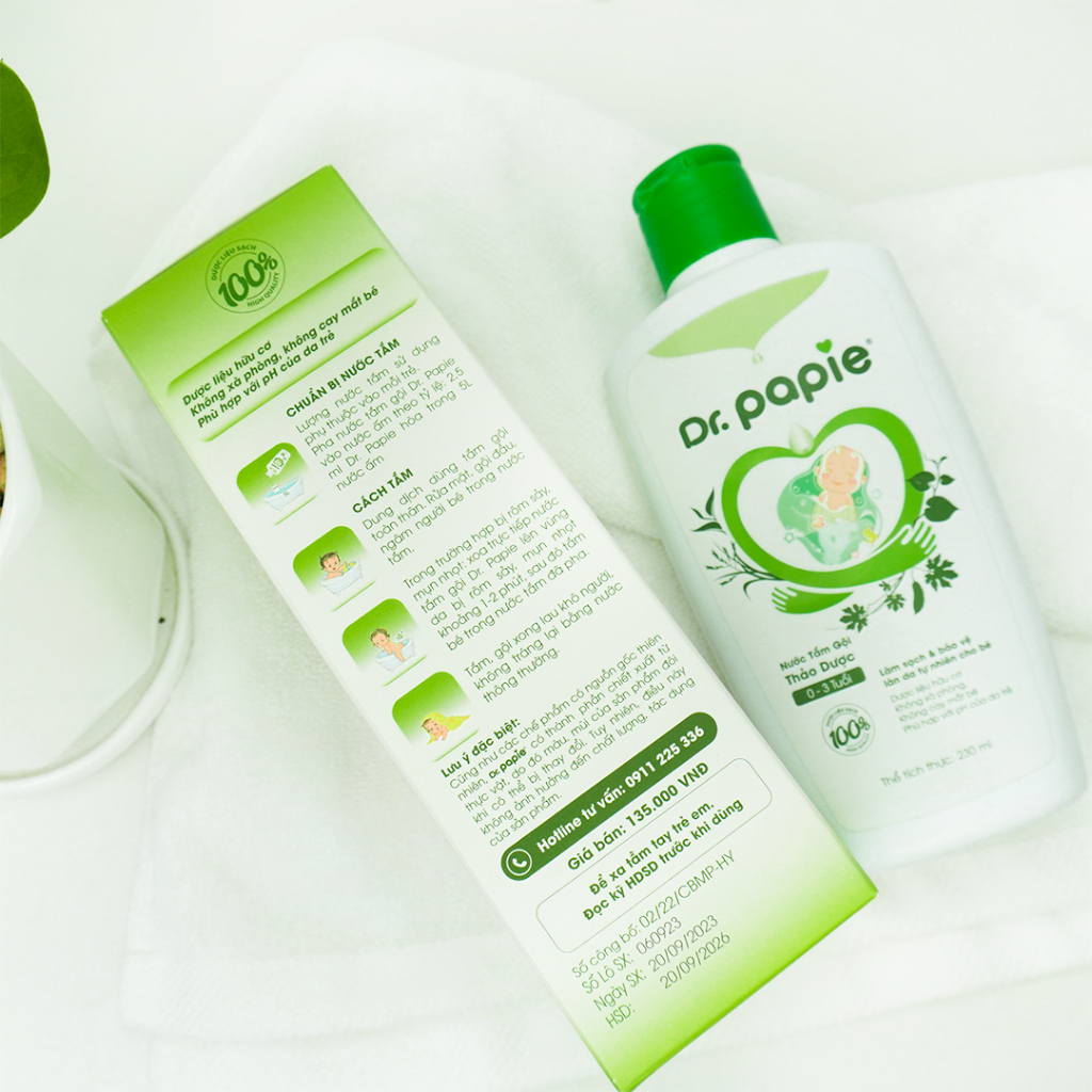 ✨Mua Chai 230ml Nước Tắm gội Thảo Dược DR PAPIE Tặng 1 Khăn Sữa Cho Bé