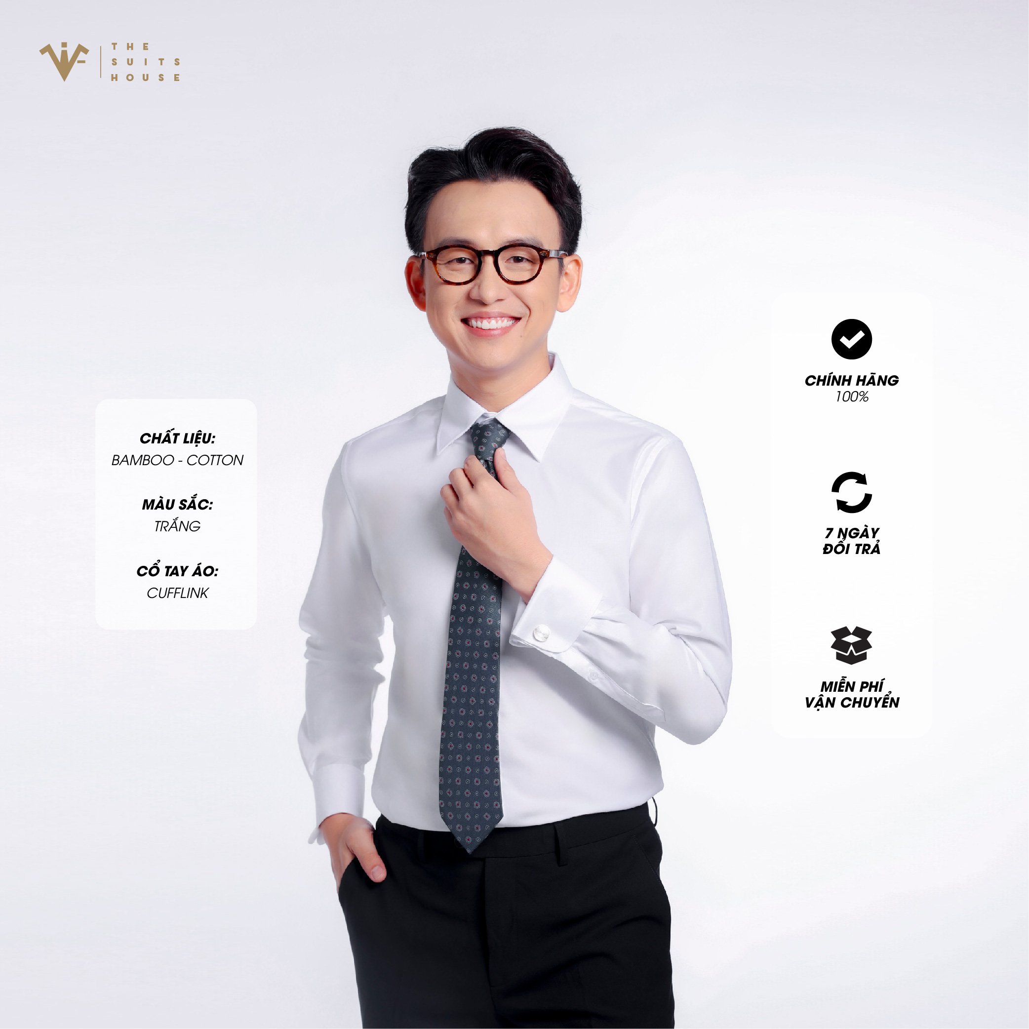 ✨[MUA SƠ MI TẶNG CUFFLINK] ÁO SƠ MI TRẮNG, CỔ TAY ÁO CUFFLINKS, CHẤT LIỆU BAMBOO CAO CẤP, THƯƠNG HIỆU THE SUITS HOUSE