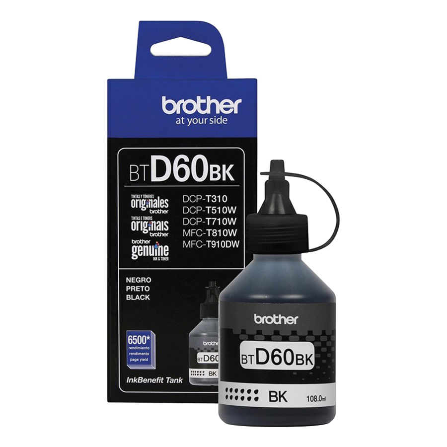 Mực In Brother BT-D60BK là loại mực in phun màu đen được thiết kế tương thích với máy in phun màu Brother MFC-T910DW, Brother MFC-T810W, Brother DCP-T510W, Brother DCP-T710W, Brother DCP-T310, Brother MFC-T4500DW, Brother HL-T4000DW.