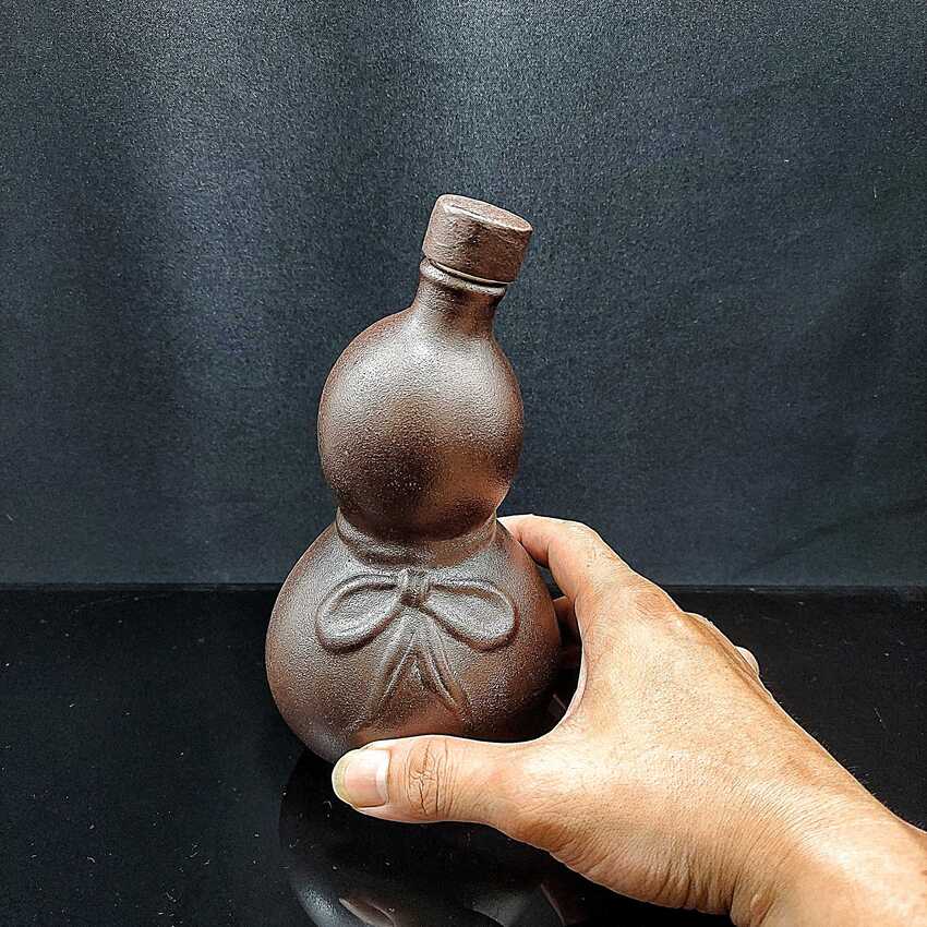 Nậm Rượu Gốm 500ML cao cấp mẫu hồ lô nghiêng màu nâu đất Nậm Đựng Rượu cho giới sành tửu – Nậm Rượu Đẹp (L4) Terracotta Bottle 500ML - Lean Gourd shape – Brown color