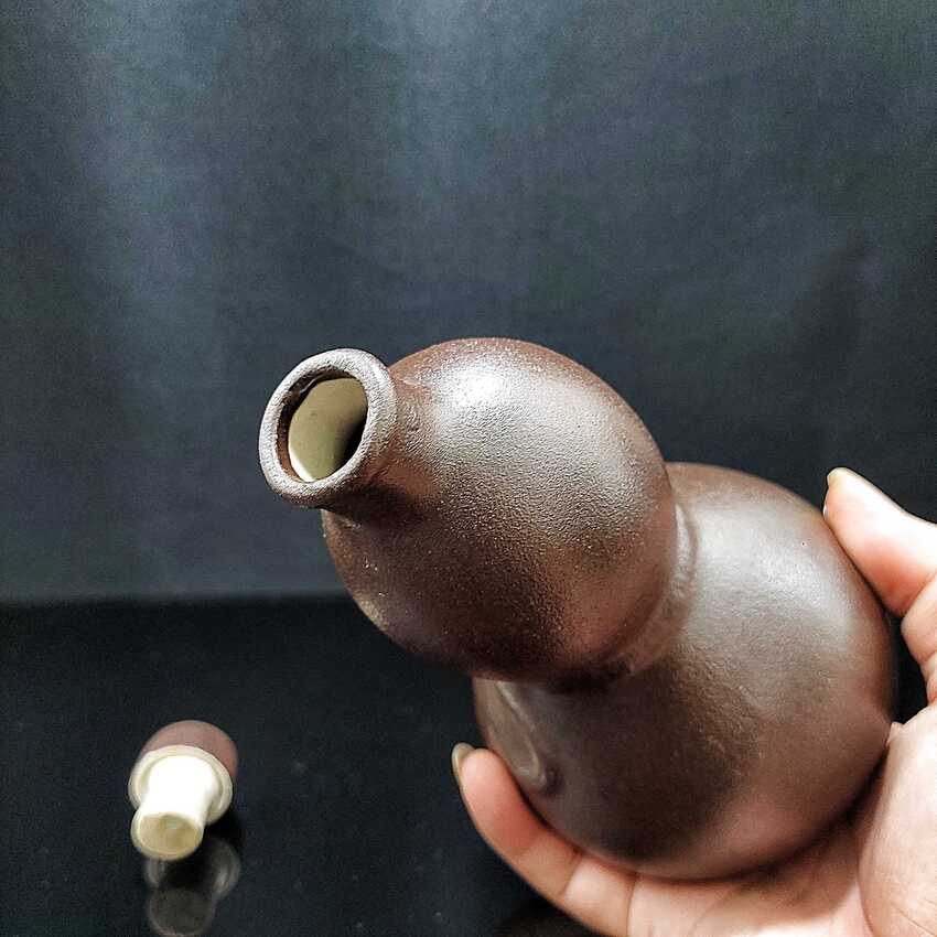 Nậm Rượu Gốm 500ML cao cấp mẫu hồ lô nghiêng màu nâu đất