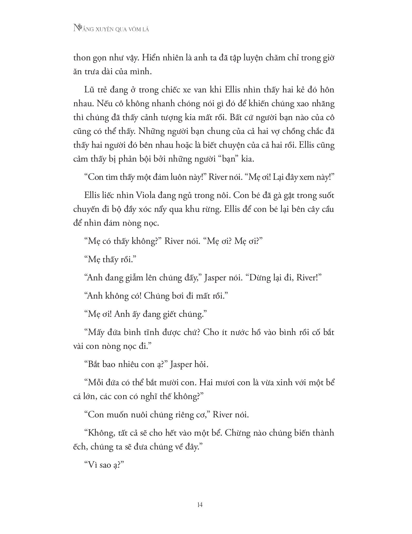 Trong cơn bấn loạn ấy, Ellis Abbey đã vô tình rời mắt khỏi cô con gái của m.ình, Viola – dù chỉ trong vài phút. Nhưng khi cô quay lại, Viola đã biến mất. Vết nứt sẵn trong cuộc hôn nhân của họ đã toác rộng hơn, cùng với đó vụ bắt cóc cũng khiến Ellis biến mất – mà thực ra là cô đã vùi m.ình trong đau buồn, tội lỗi và nghiện ngập. Với suy nghĩ rằng m.ình chỉ mang lại sự đen đủi cho gia đình, Ellis đã bỏ lại chồng cùng hai cậu con trai nhỏ, vùi sâu hơn nỗi đau đớn đến tuyệt vọng về các con trong hành trình độc bước vào một vùng núi hoang vu.