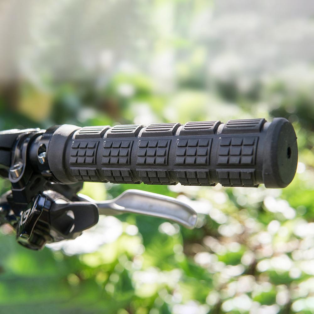 This handlebar grips with large raised pads act like hooks for your fingers and provde nice traction when hanging off the rear of the bike. At the same time, it provide outstanding shock absorption. Closed