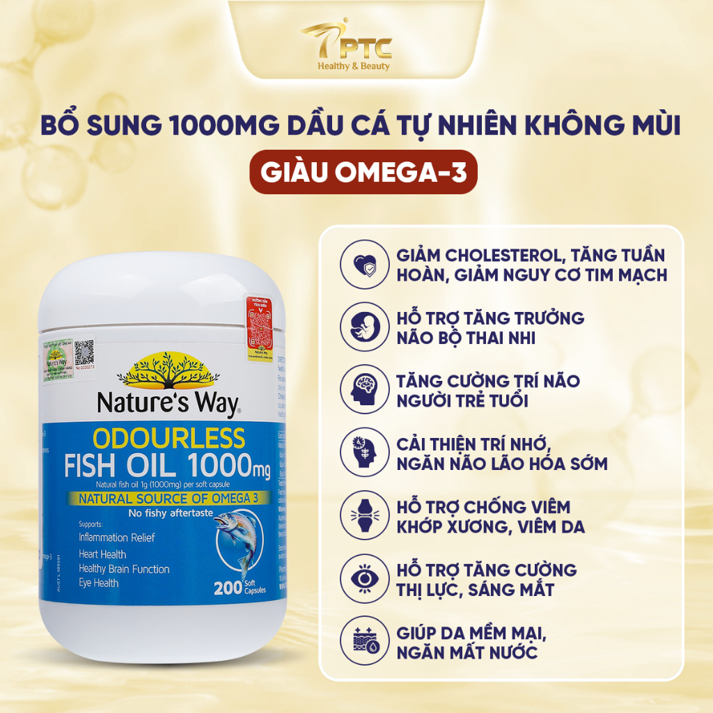 DHA Cho Bà Bầu Nature's Way Odourless Fish Oil 1000mg (Hộp 200 Viên)