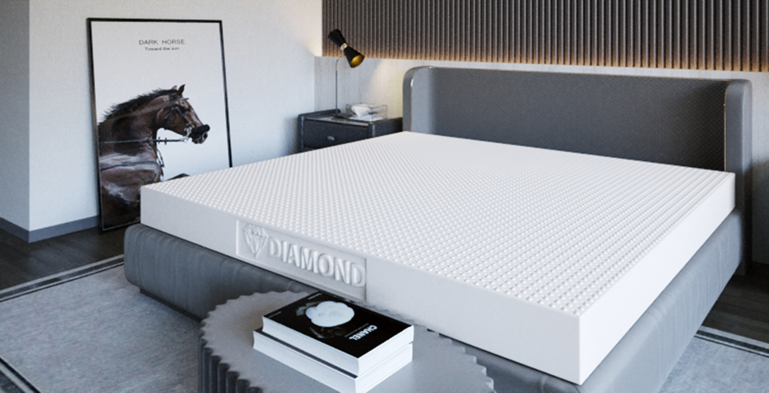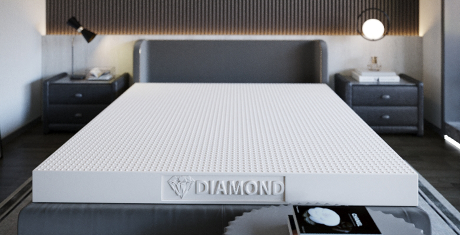 Nệm cao su kim cương Diamond Luxuryđược sản xuất từ 100% cao su thiên nhiên, được xử lý bằng công nghệ tiên tiến có khả năng tiêu diệt các vi khuẩn tác động đến da.