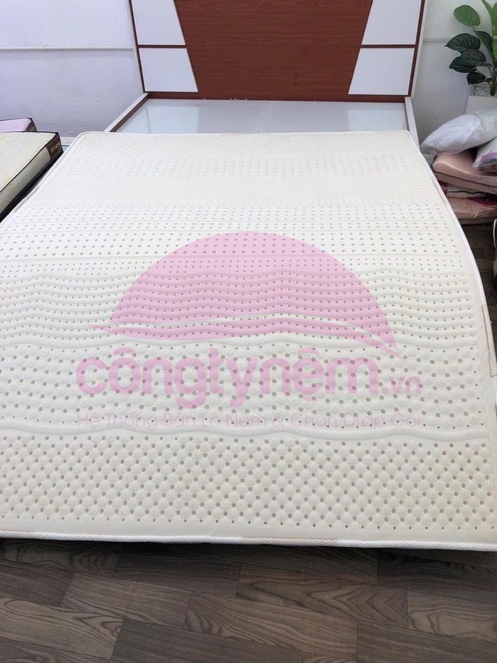 Nệm sử dụng 100% cao su thiên nhiên mặt trên dày 2.5cm, mặt dưới 7.5cm là cao su non.