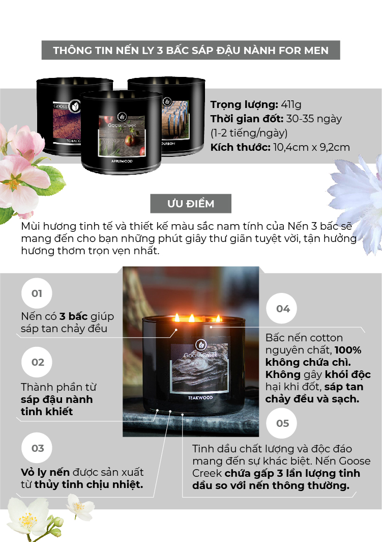 ✨Nến ly 3 bấc sáp đậu nành For Men Goose Creek (411g) - Driftwood