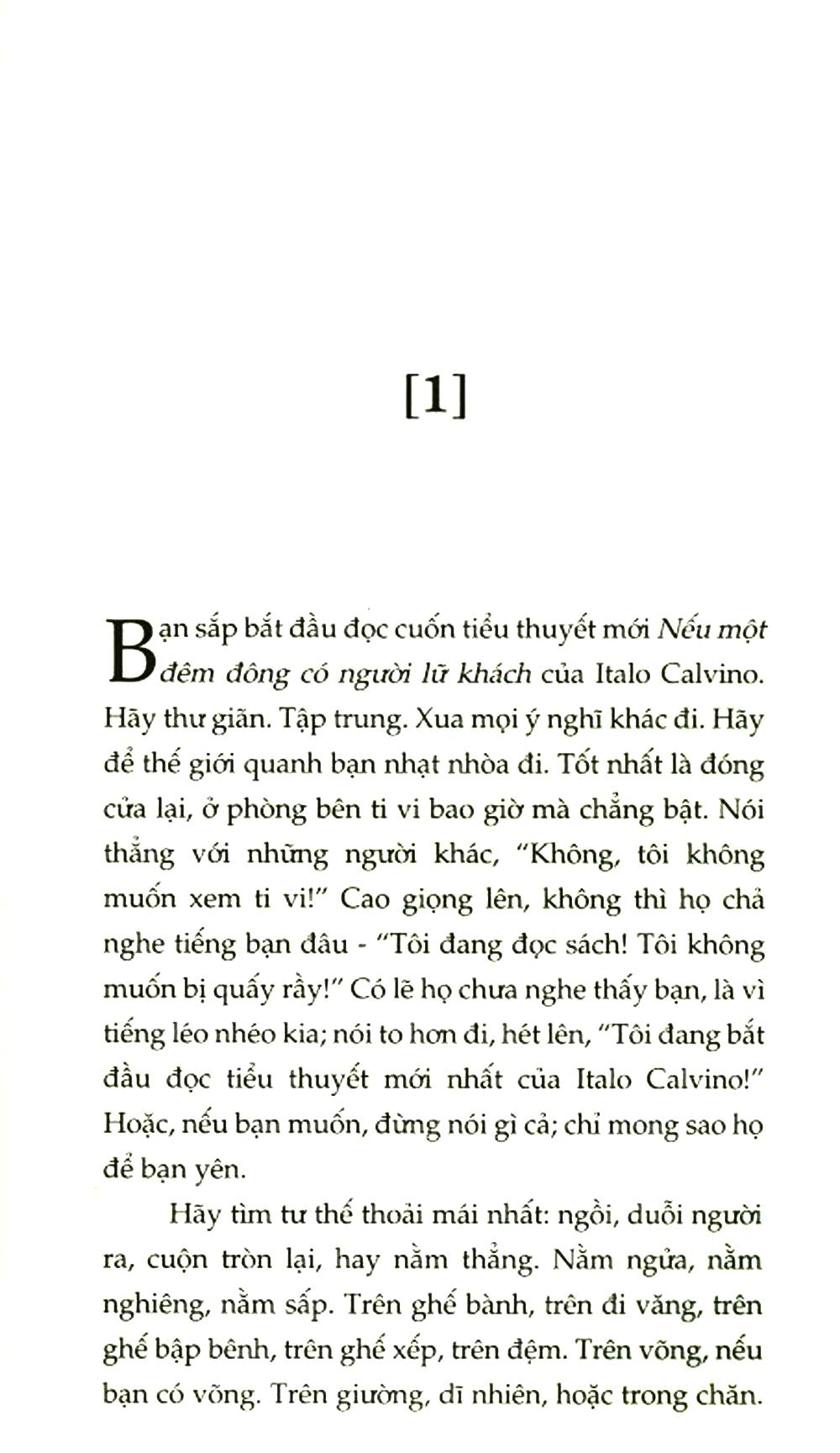 Một cái kết mở thì rất nhiều nhà văn giỏi đã làm, nhưng một cái mở không tiến lên, thậm chí không kết, thì hình như chỉ một người như Italo Calvino mới dám biến thành trò chơi tiểu thuyết của m.ình. Làm cho một cuốn tiểu thuyết “đi tới” trong sự tiến triển hợp lý và đẹp đã là khó, nhưng giữ cho một cuốn tiểu thuyết hoàn chỉnh đứng yên ở ngưỡng bắt đầu còn khó hơn nhiều lần.