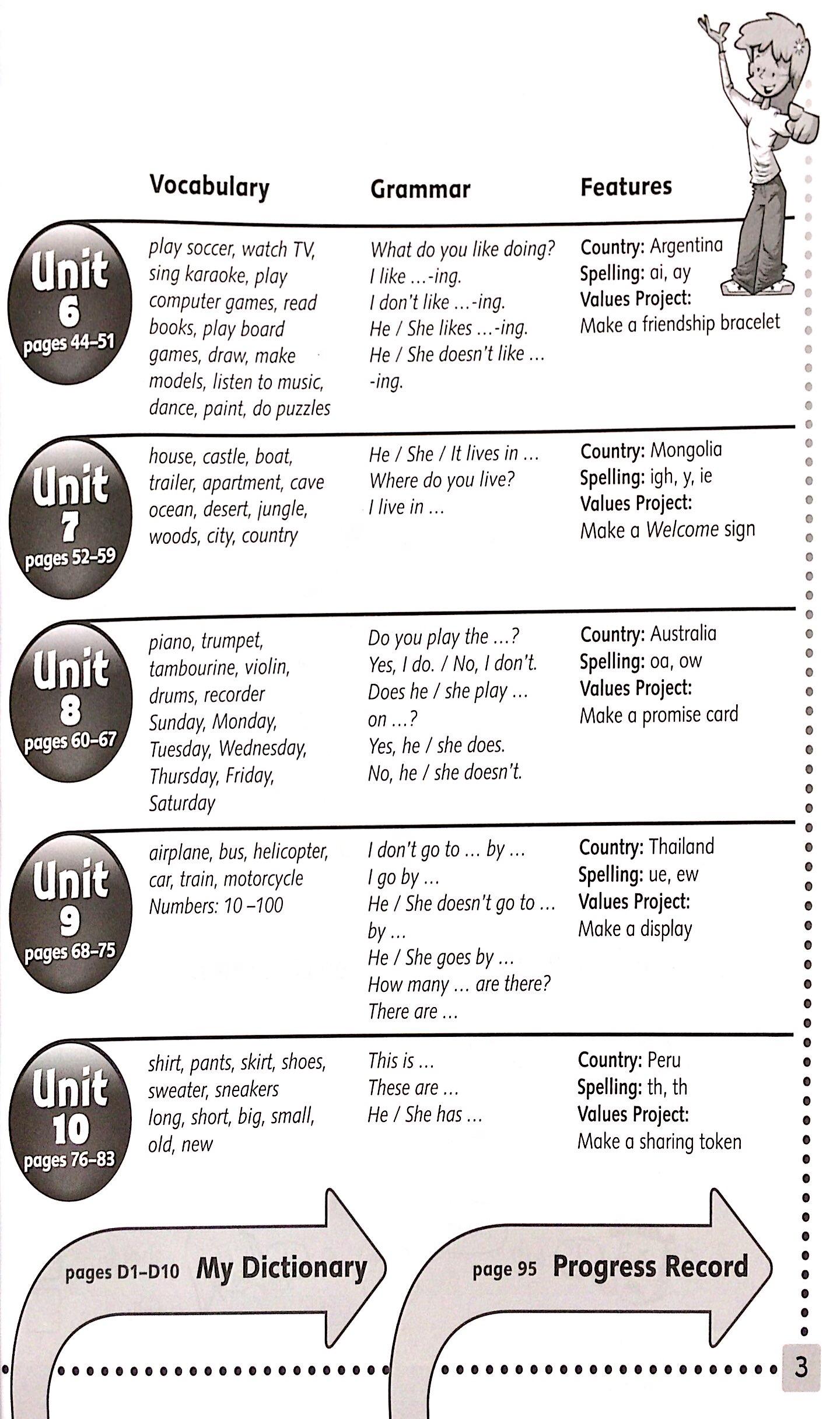 Provides more practice to consolidate the Student Book Picture Dictionary (Levels 1-4) helps with vocabulary practice Grammar Reference Guide (Levels 5-6) offers more practice, and allows students and teachers to check grammar rules
