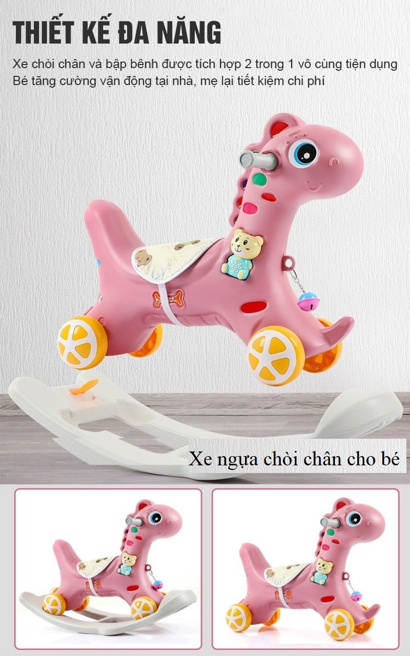 ✨Ngựa bập bênh kết hợp xe chòi chân có nhạc cho bé