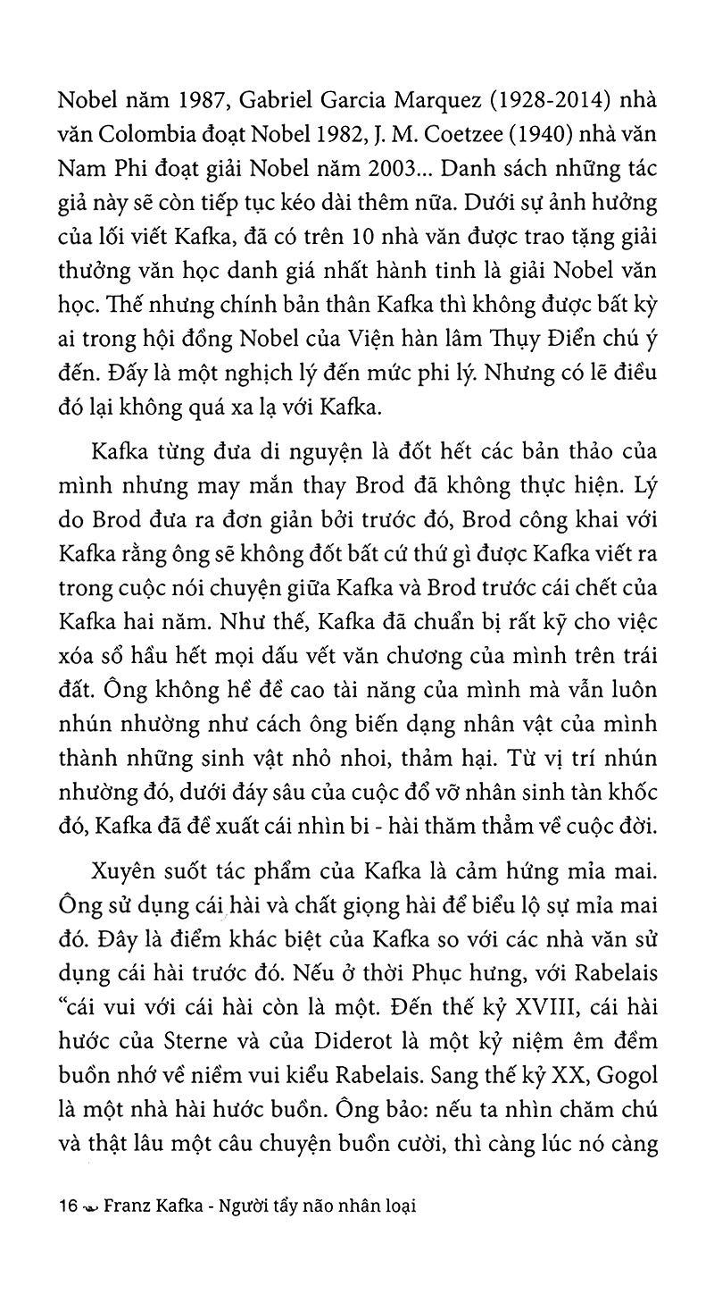 Biệt ngữ mà giới nghiên cứu ngày nay thường dùng để chỉ tính chất huyền thoại trong nghệ thuật Kafka là Kiểu Kafka. Quả thật Kafka không chỉ tạo nên huyền thoại cho những trang viết, hình tượng trên trang sách của mình mà còn tạo được cho mình một tầm vóc huyền thoại. Ông là Prometheus của ngôn từ, của sự sống tinh thần bất diệt. Nhưng ông không đánh cắp lửa từ Thượng đế tối cao mà công khai mang ngọn lửa sáng tạo ấy đặt ngay xuống biển đời đang vỡ tung thành trăm ngàn con sóng cuồng nộ, để nhen nhóm trong khát vọng sống, để xoa dịu nỗi đau vô cùng tận, để họ nhìn thấy thứ ánh sáng bên kia, vẫn ngay trên cuộc đời, một khả năng tồn tại tốt đẹp hơn cho con người. “Kafka biết cách tìm ra mặt sáng của mọi thứ. Điều đó như thể một người đến bên hồ nơi mặt trời đang tỏa chiếu, đang nhảy nhót với hàng ngàn gợn sóng lấp lánh, rồi do bị lóa mắt, người ấy phải nheo lại để nhìn cho đỡ chói”.