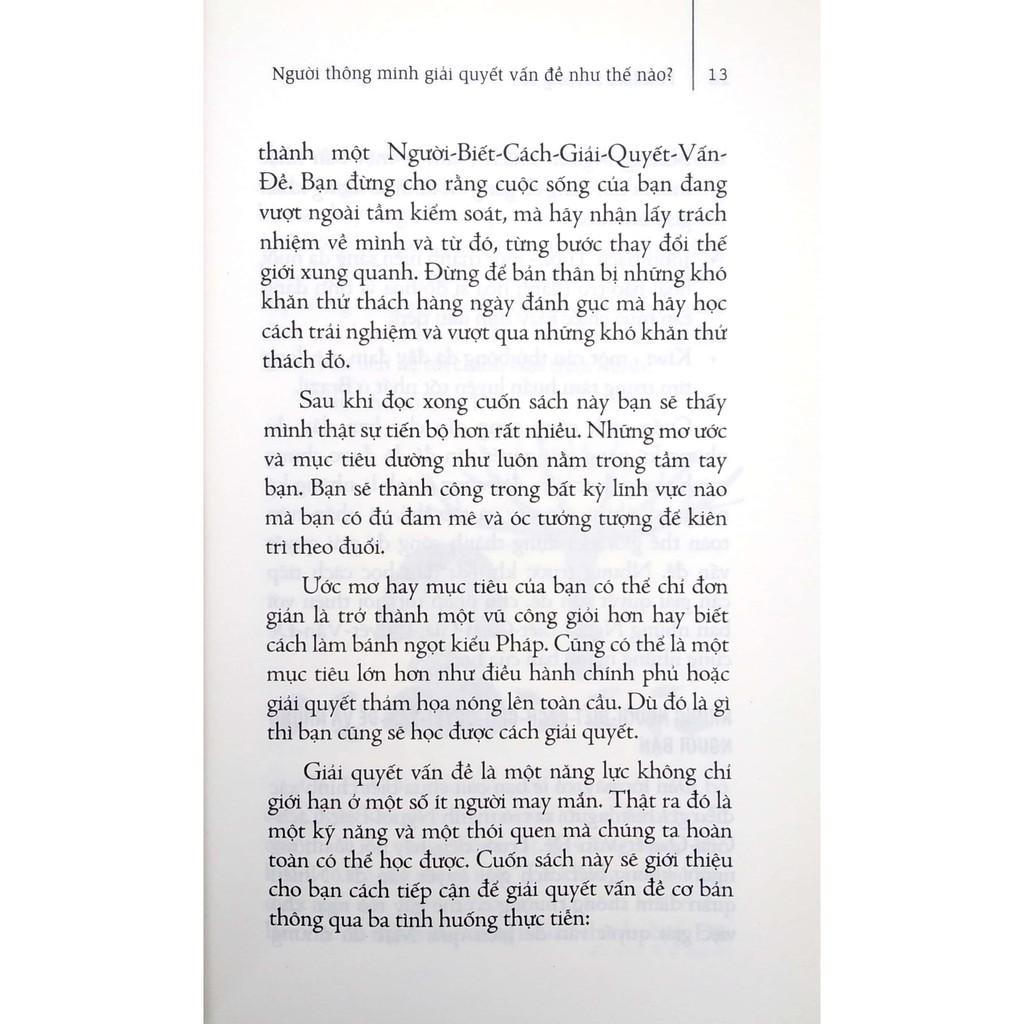 Và theo như tác giả chia sẻ thì ông không đưa ra một tập hợp những kỹ năng bởi “Giải quyết vấn đề không chỉ cần các kỹ năng, mà còn cần hơn là một hệ thống tư duy giúp con người phát huy tối đa khả năng của mình và tạo ra một thế giới tốt đẹp hơn. Những người muốn giải quyết vấn đề thực sự ít khi chấp nhận những điều kiện hiện có mà luôn chủ động tìm cách cải thiện môi trường xung quanh mình”.